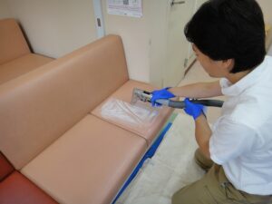 横浜市のクリニック様 待合室ビニルレザーソファーのクリーニング