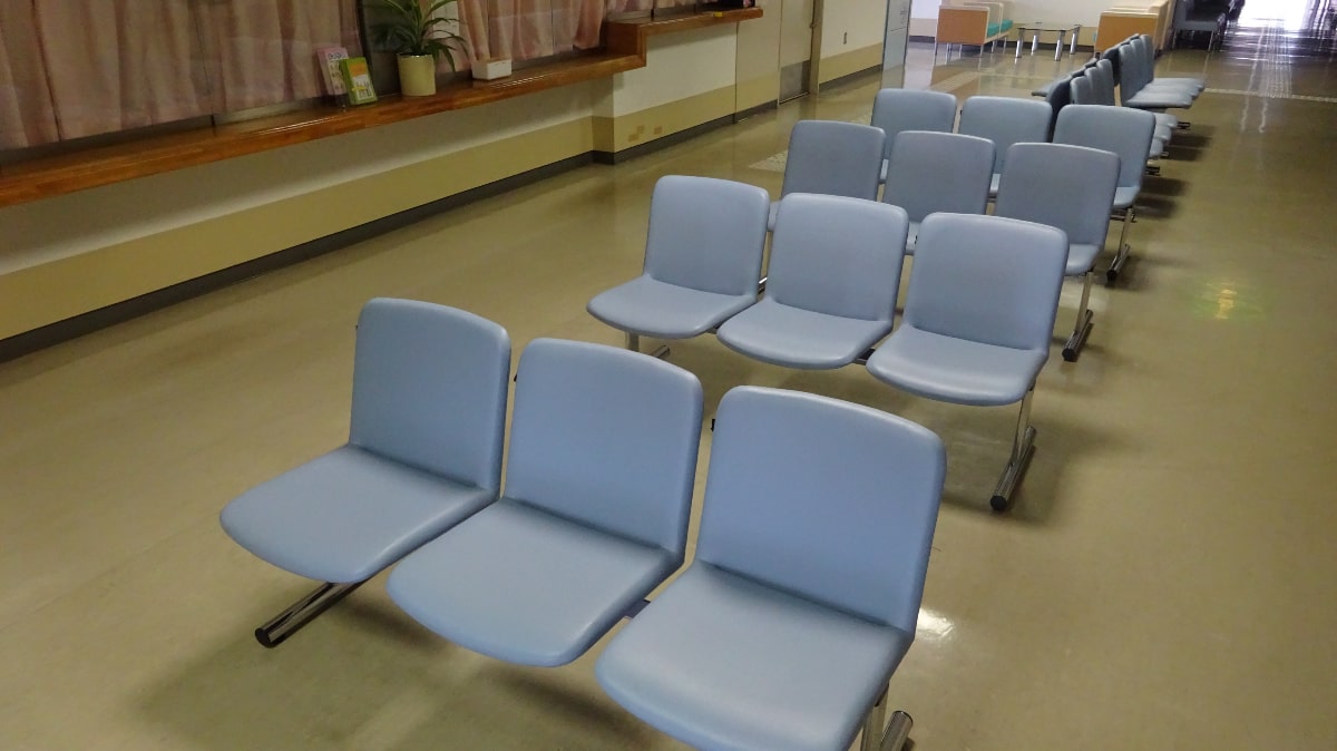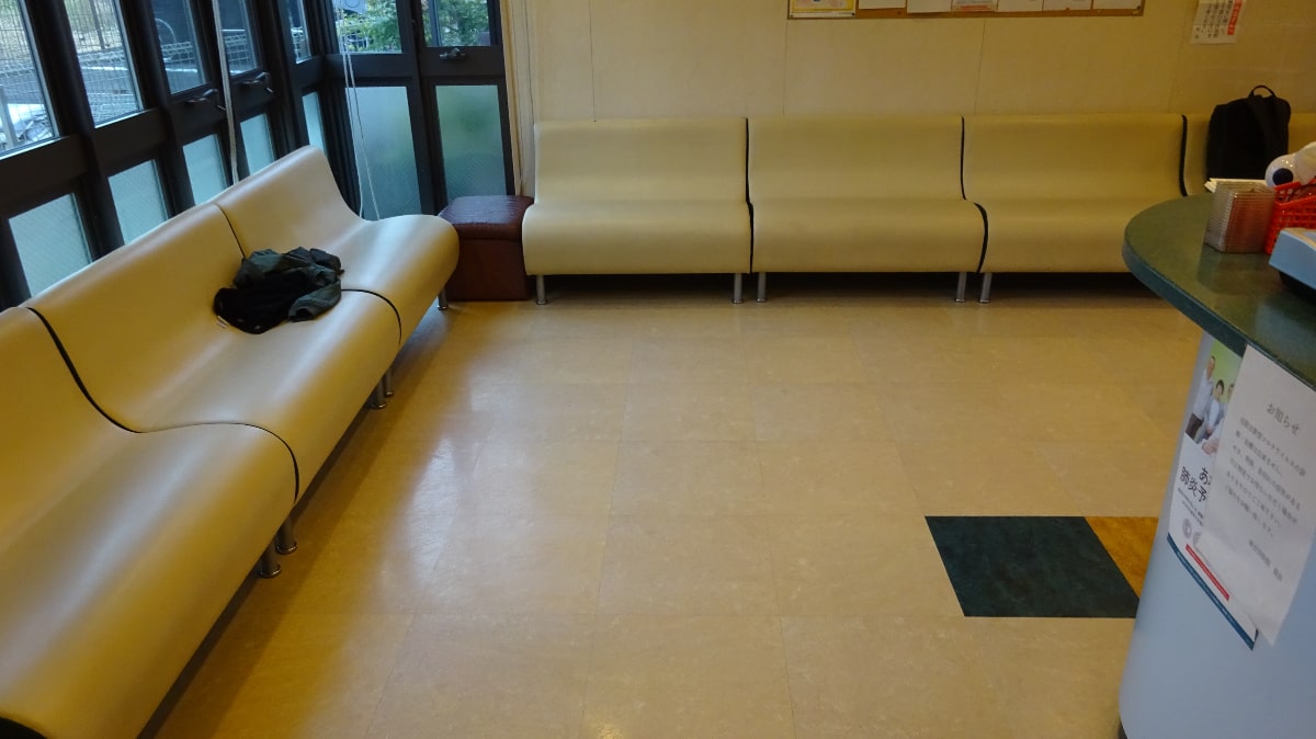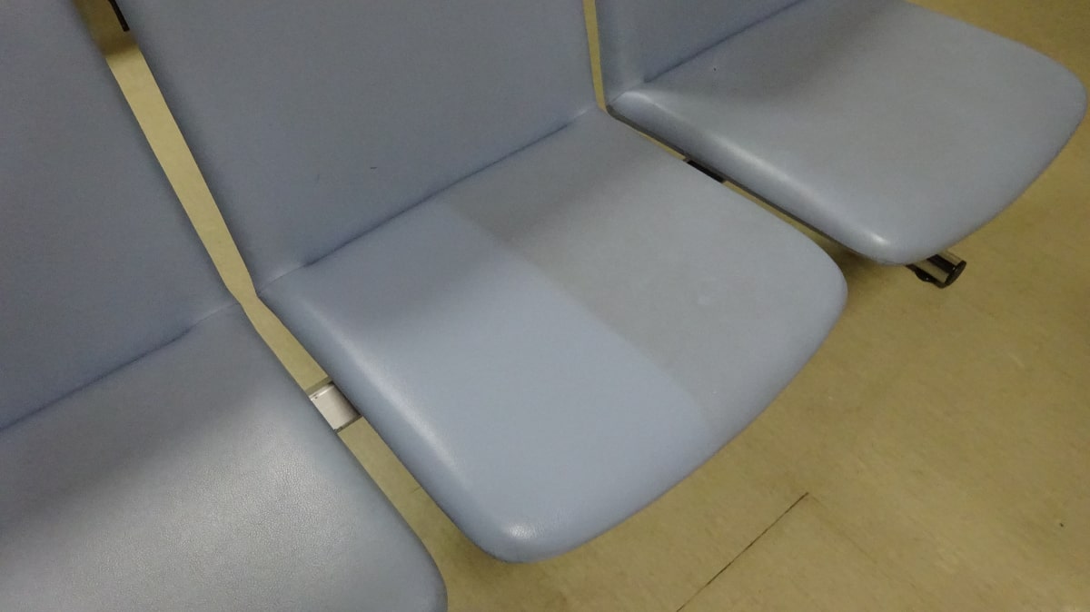 横浜市の病院様 外来待合室のビニルレザー製ロビーチェアのクリーニング